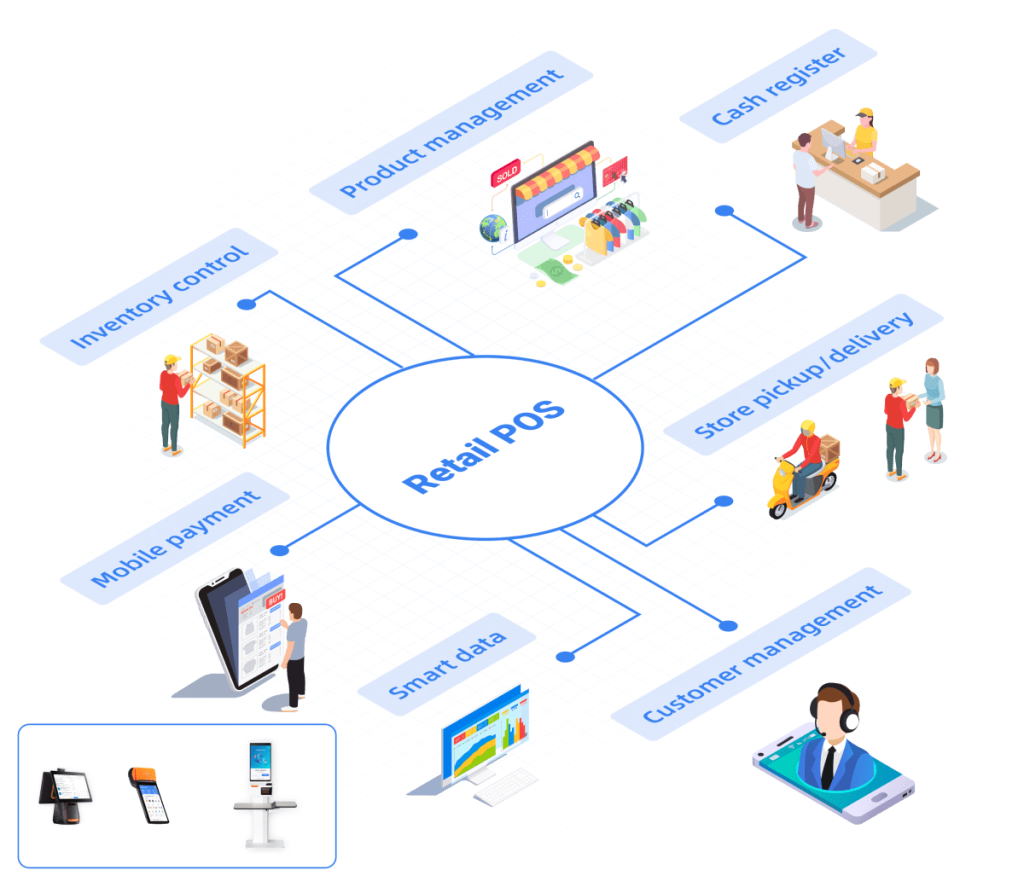 Retail PoS is a solution consisting of management software and hardware to cover all store operation scenarios.