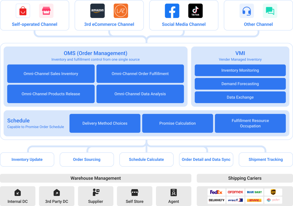 Omni-Channel Order Management System (Omni-Channel OMS)connects upstream supply chain and downstream sales channels. It handles all business in a closed loop, bringing efficiency to inventory management, warehousing, transportation, order fulfillment and operation services.